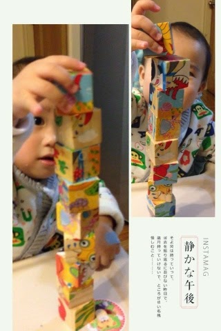 這套積木的原型是六面拼圖。瞕瞕未有耐識玩,而家都係用來玩住疊疊樂先。